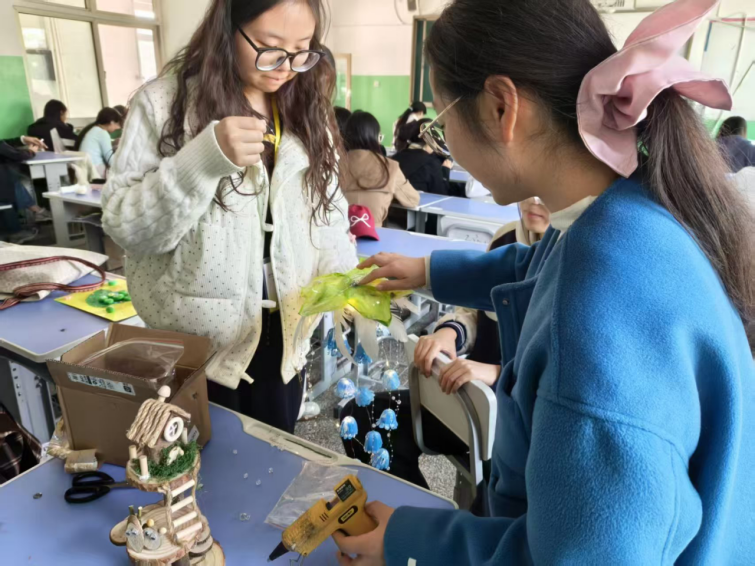 | 冯欢老师指导学生制作手工作品 |