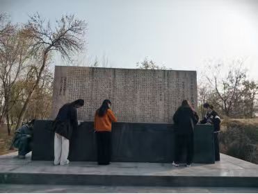 | 金书记讲述军屯惨案历史 | 师生认真聆听 |